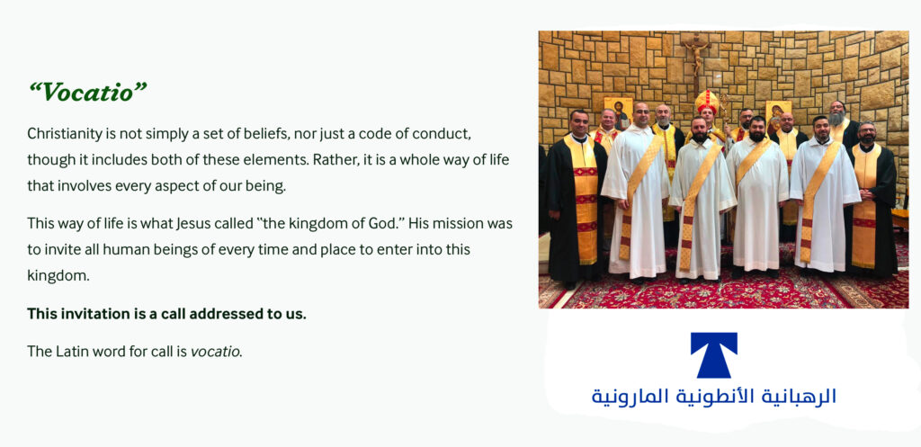 Thank you for visiting this page. for more information you can contact :Fr. Robert Mamari معلّم الابتداء: الأب روبير المعماريهاتف: 24/960076 – 24/961176 – 24/862813فاكس: 24/862814or any Antonin monks. Please visit: www.antonins.org